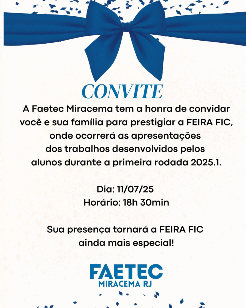 FAETEC Miracema convida para a Feira FIC – Prestigie os talentos da nossa cidade!