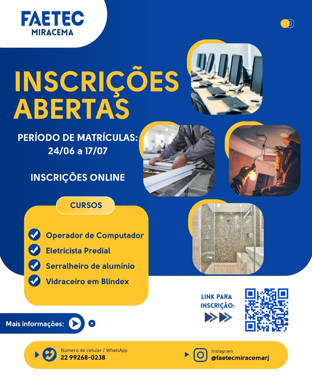 Para os cursos com inscrições até 17/07 (como Operador de Computador), as inscrições são online.